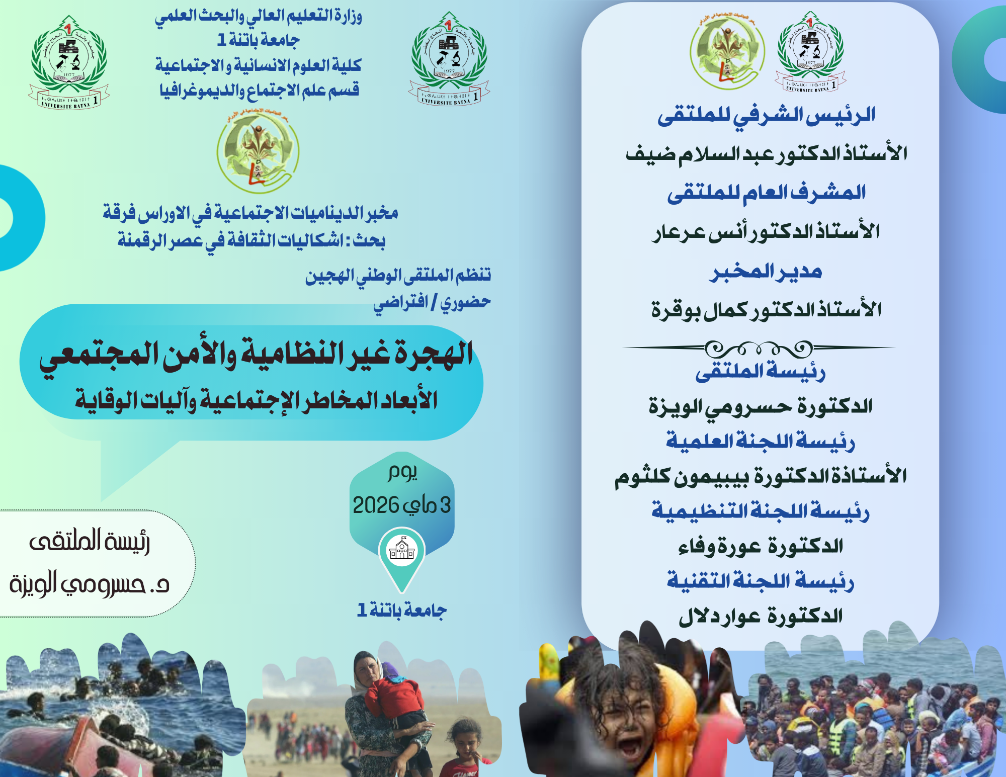 كلية العلوم الإنسانية والاجتماعية (قسم علم الاجتماع والديمغرافيا) بالتنسيق مع مخبر الديناميات الاجتماعية في الأوراس فرقة بحث: اشكاليات الثقافة في عصر الرقمنة ينظمون ملتقى وطني بعنوان: