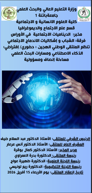 كلية العلوم الإنسانية والاجتماعية(قسم علم الاجتماع والديمغرافيا) بالتنسيق مع مخبر الديناميات الاجتماعية في الأوراس ينظمان ملتقا وطنيا بعنوان: