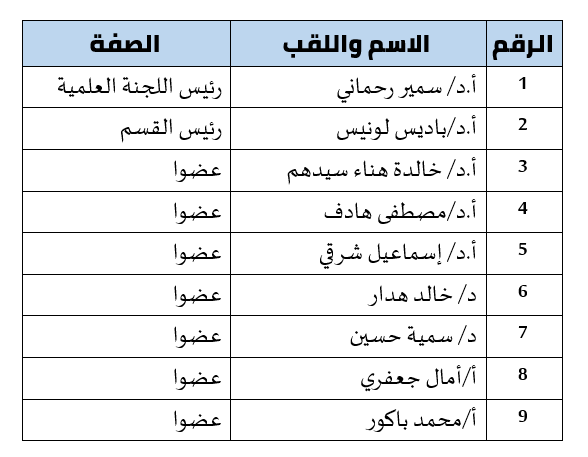 اللجنة العلمية لقسم التاريخ وعلم الآثار