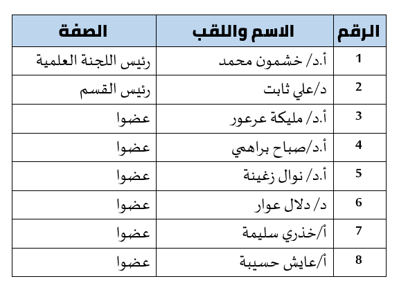 اللجنة العلمية لقسم علم النفس وعلوم التربية والأرطوفونيا