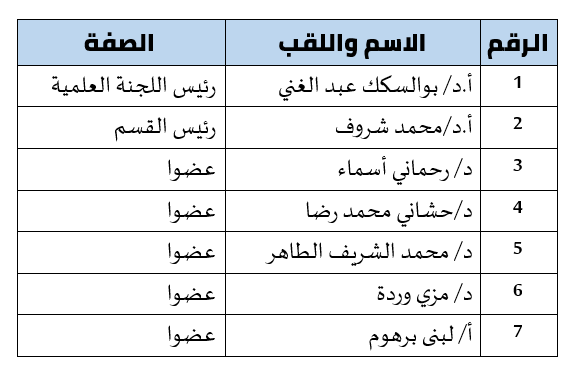 اللجنة العلمية لقسم علوم الإعلام والاتصال وعلم المكتبات